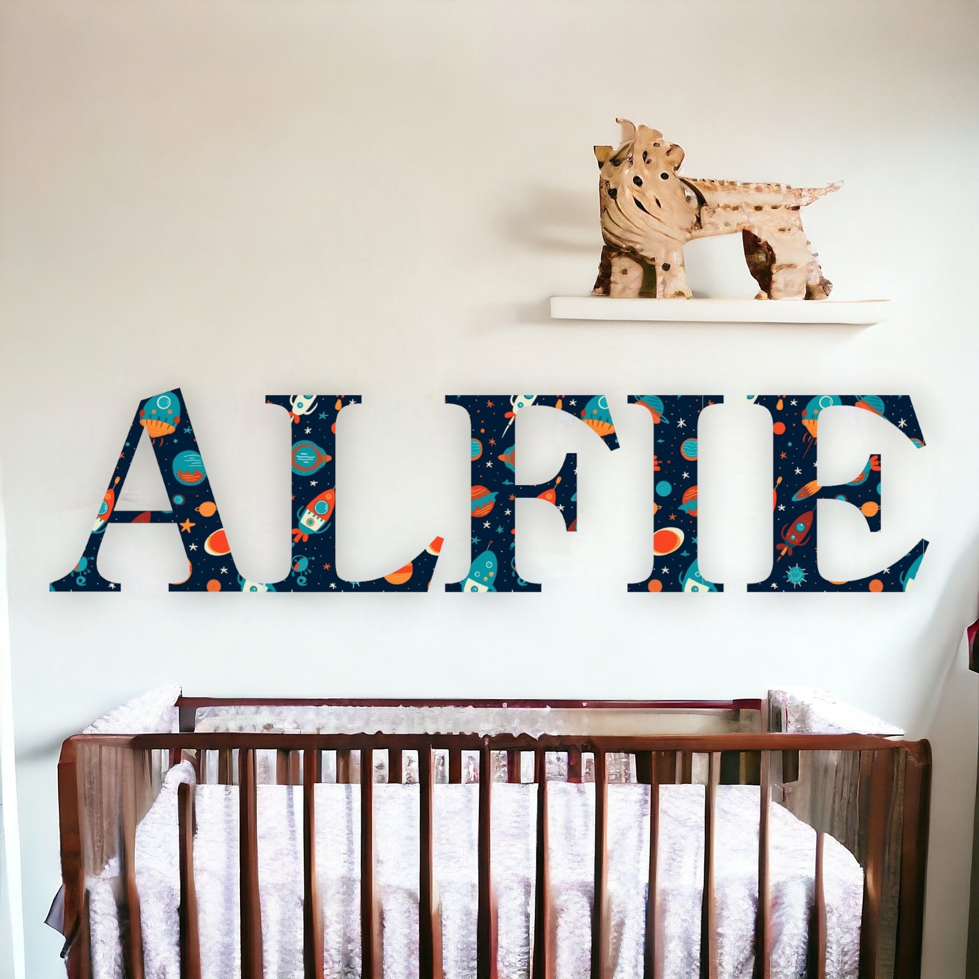 - Customisation: Tailor these Space letters with any name of your choice. Express your individuality and create a one-of-a-kind decoration for your child's room, nursery, or as a thoughtful gift.