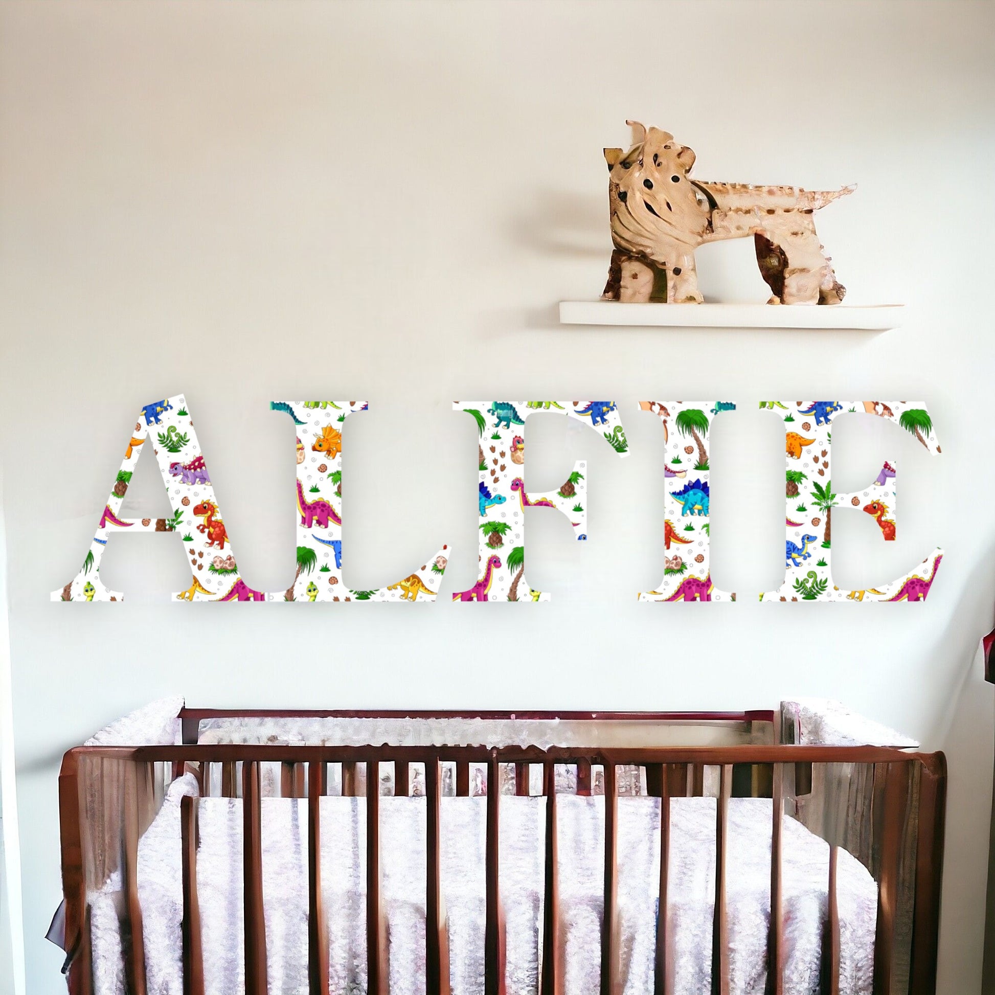 - Customisation: Tailor these Dinosaur letters with any name of your choice. Express your individuality and create a one-of-a-kind decoration for your child's room, nursery, or as a thoughtful gift.