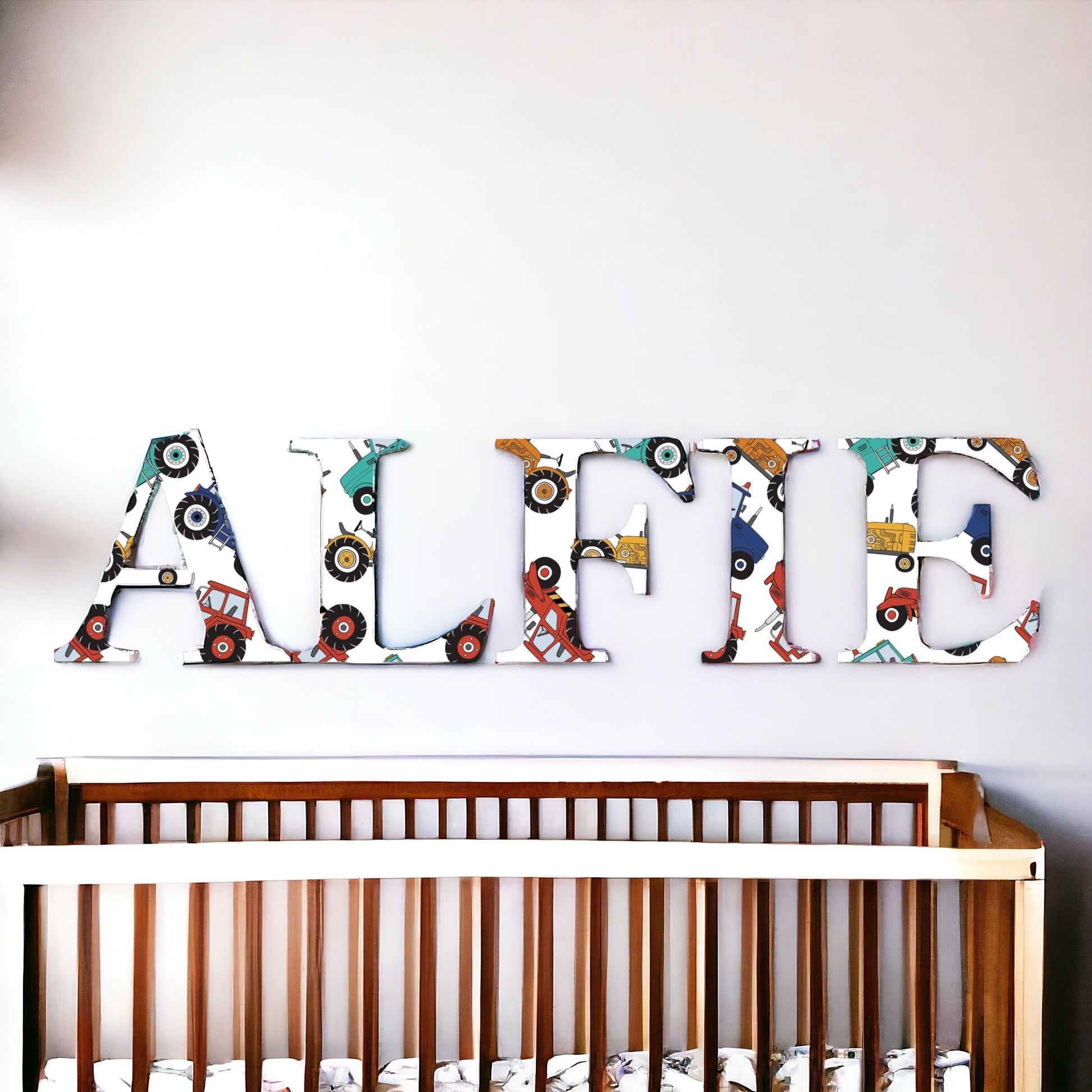 - Customisation: Tailor these Tractor letters with any name of your choice. Express your individuality and create a one-of-a-kind decoration for your child's room, nursery, or as a thoughtful gift.