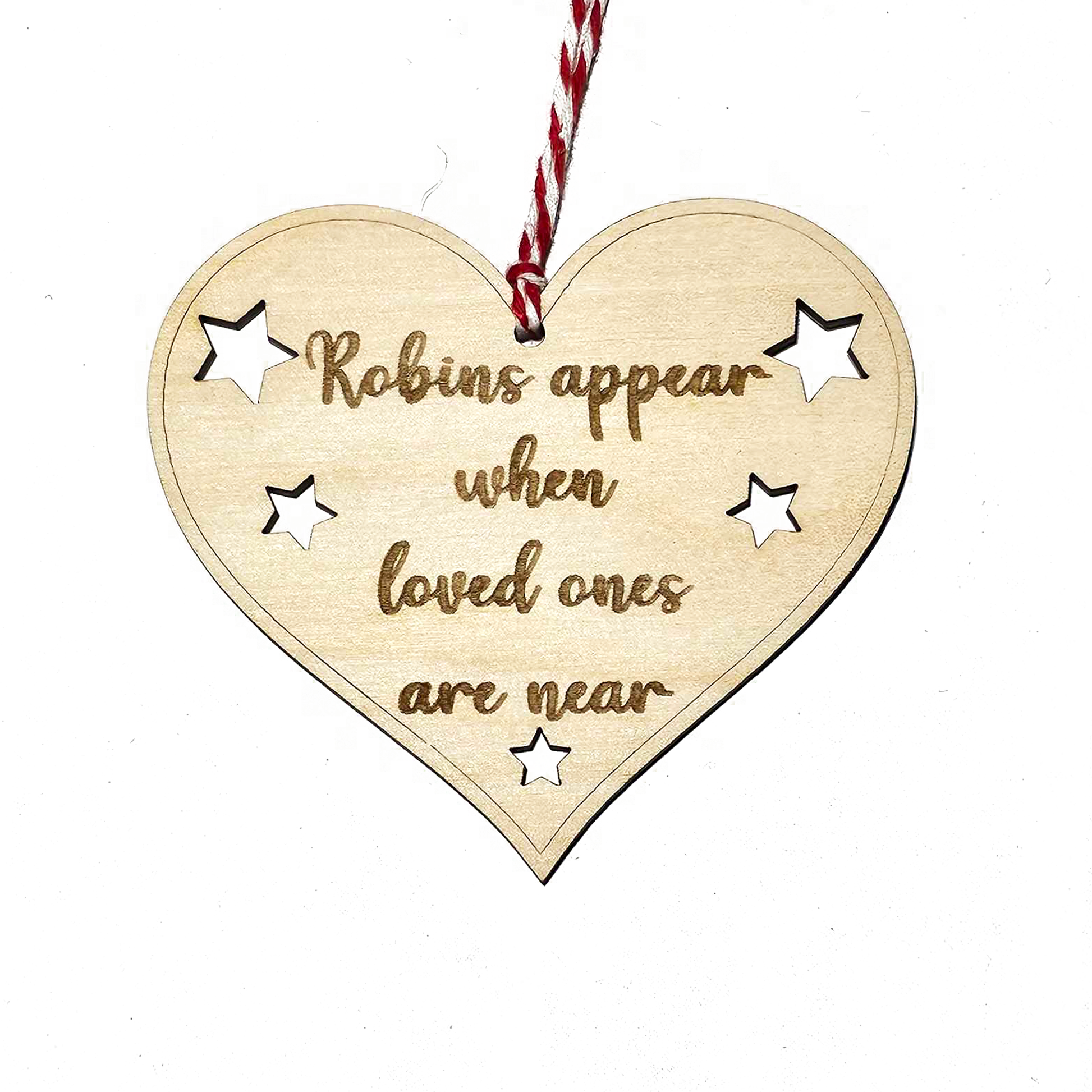 Capture the heart warming essence of the season with our Robins Appear When Loved Ones Are Near Tree Decoration—an enchanting addition to your festive decor that brings a comforting touch of nature and remembrance to your Christmas tree. Crafted with precision through laser cutting on high-quality birch wood, this ornament isn't just a festive embellishment; it's a heartfelt symbol that evokes the presence of cherished loved ones.